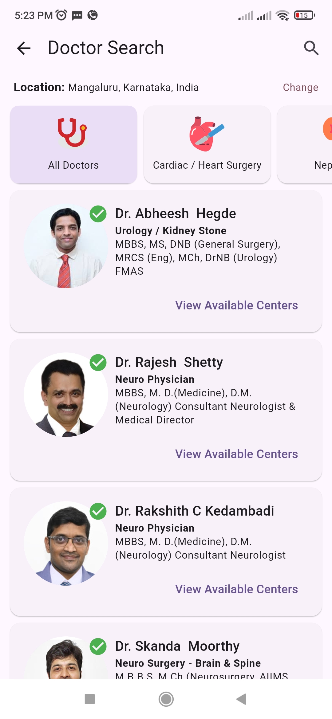 • Trusted recommendations for specialist and super-speciality doctors based on your health needs.